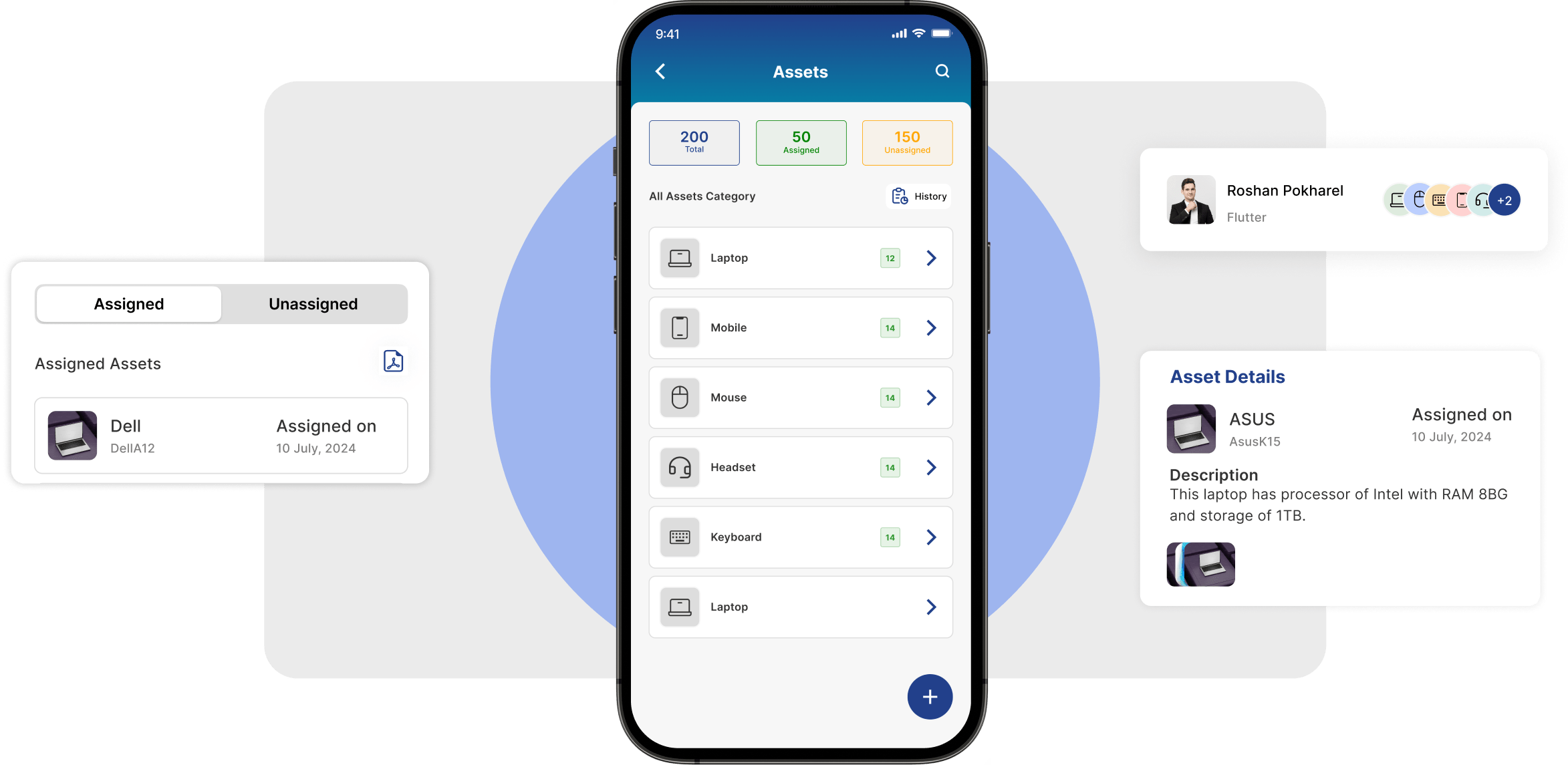 Manage, assign, and track company assets to ensure security and efficiency in asset utilization.